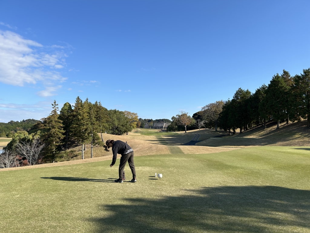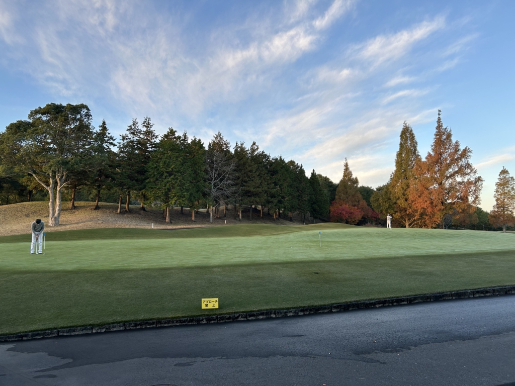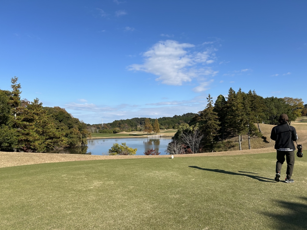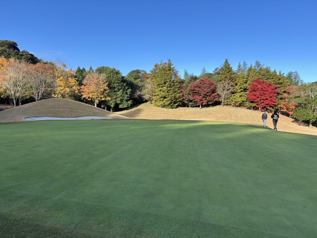 この日は 秋晴れの素晴らしい一日。空は高く澄み、陽光がコースの木々を優しく照らしていました。ちょうど紅葉が深まり始めた頃で、フェアウェイの両脇やホール間の林が赤やオレンジに染まり、とても美しい景観。風も穏やかで、まさにゴルフ日和。気温もほどよく、晩秋の季節感を感じながら、リラックスしてプレーできました。
