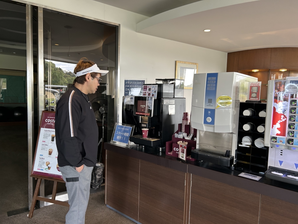スタート前に無料のドリンクが提供されています、コーヒーをいただきながらゆっくり休憩して身体を温めることができます。かわいいソファがあるラウンジで午後のラウンドに向けて心の準備を。